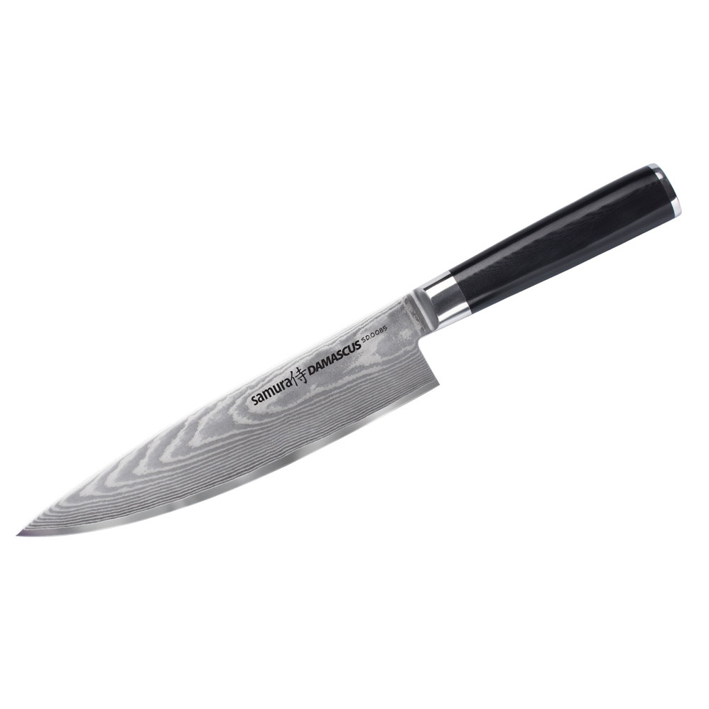 Zahvaljujoč obsežnim izkušnjam japonskih mojstrov je bila serija Damascus razvita z najvišjo natančnostjo, ki združuje najboljšo ergonomijo, odličen dizajn in dobro razmerje med ceno in kakovostjo. Vsak nož je bil skovan s 67 plastmi originalnega japonskega damaščanskega jekla, kar zagotavlja dolgo življenjsko dobo in brezhiben dizajn. Ergonomski ročaj iz G-10, trpežnega materiala, ki se uporablja pri izdelavi zunanjih nožev, nudi popoln nadzor med rezanjem.