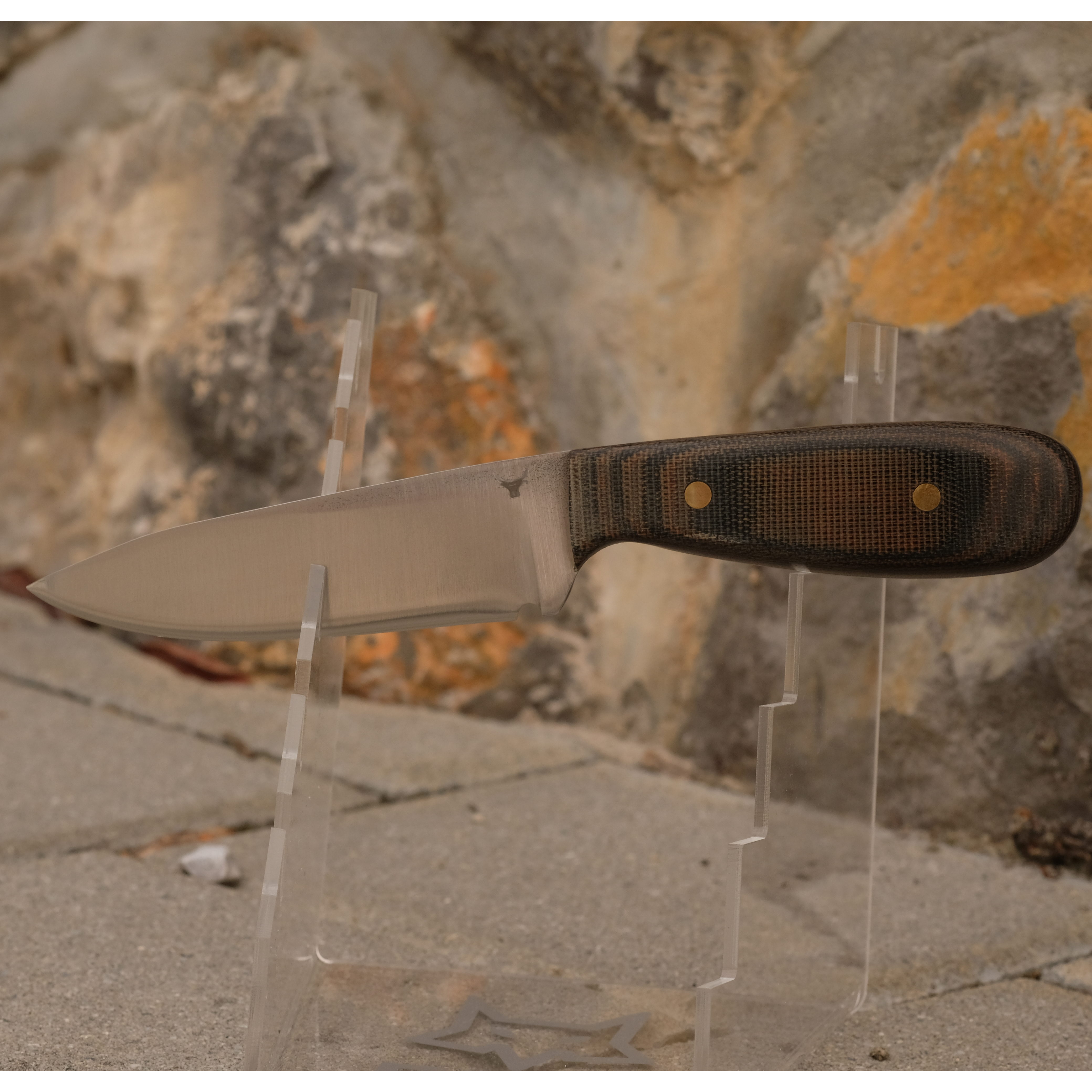 Suki lovski nož je nož lastne ročne izdelave. Izredno priročen majhen nož s krajšim a debelim ročajem omogoča okretno delo. Poleg priložena nožnica iz črnega usnja ročno šivana. Dolžina rezila 10cm, dolžina celega noža 20cm.